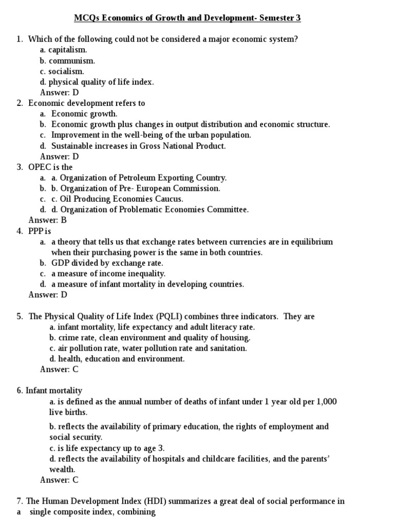 Mcq Economics Of Growth And Development Correct Pdf Pdf Economic Development Economic Growth